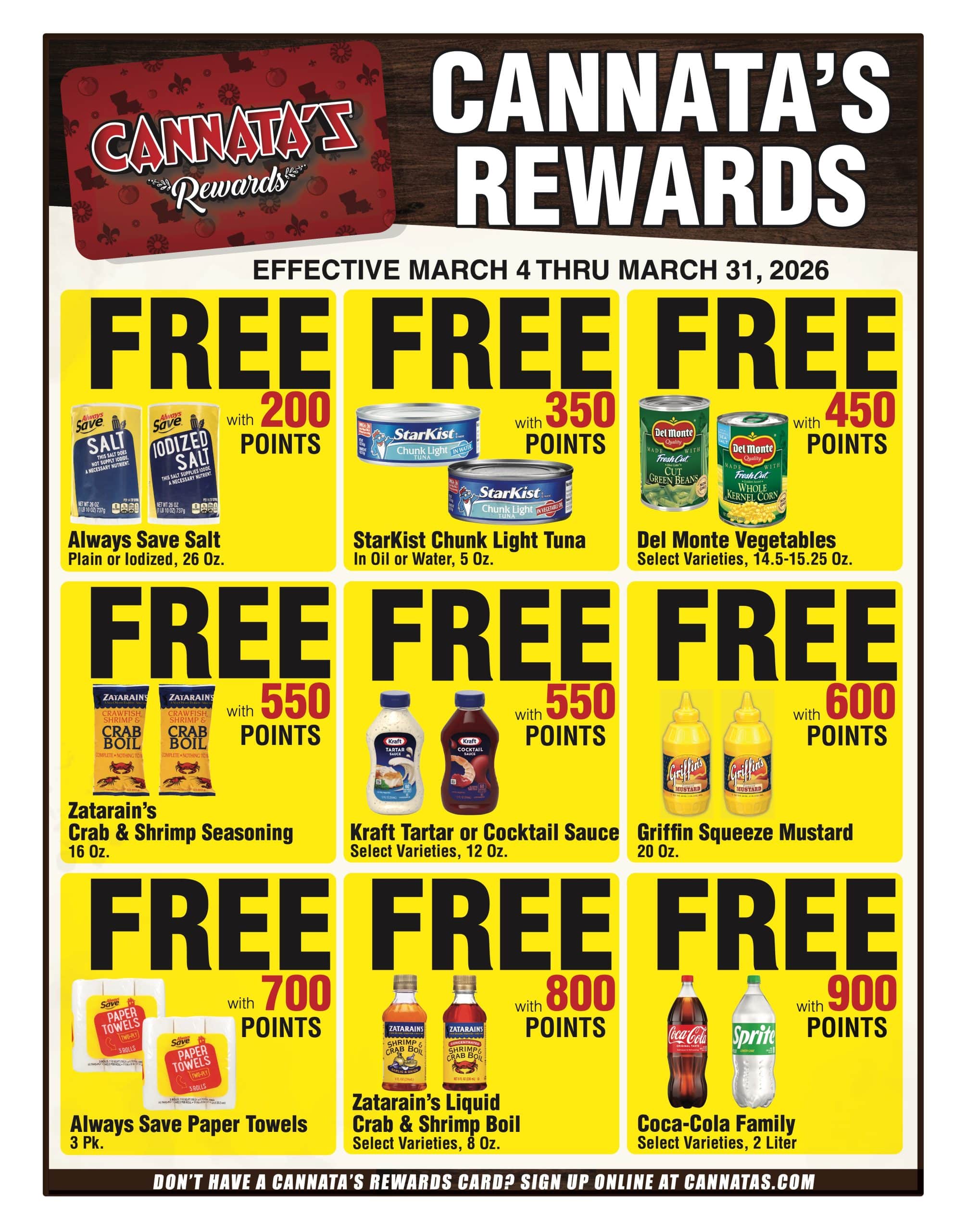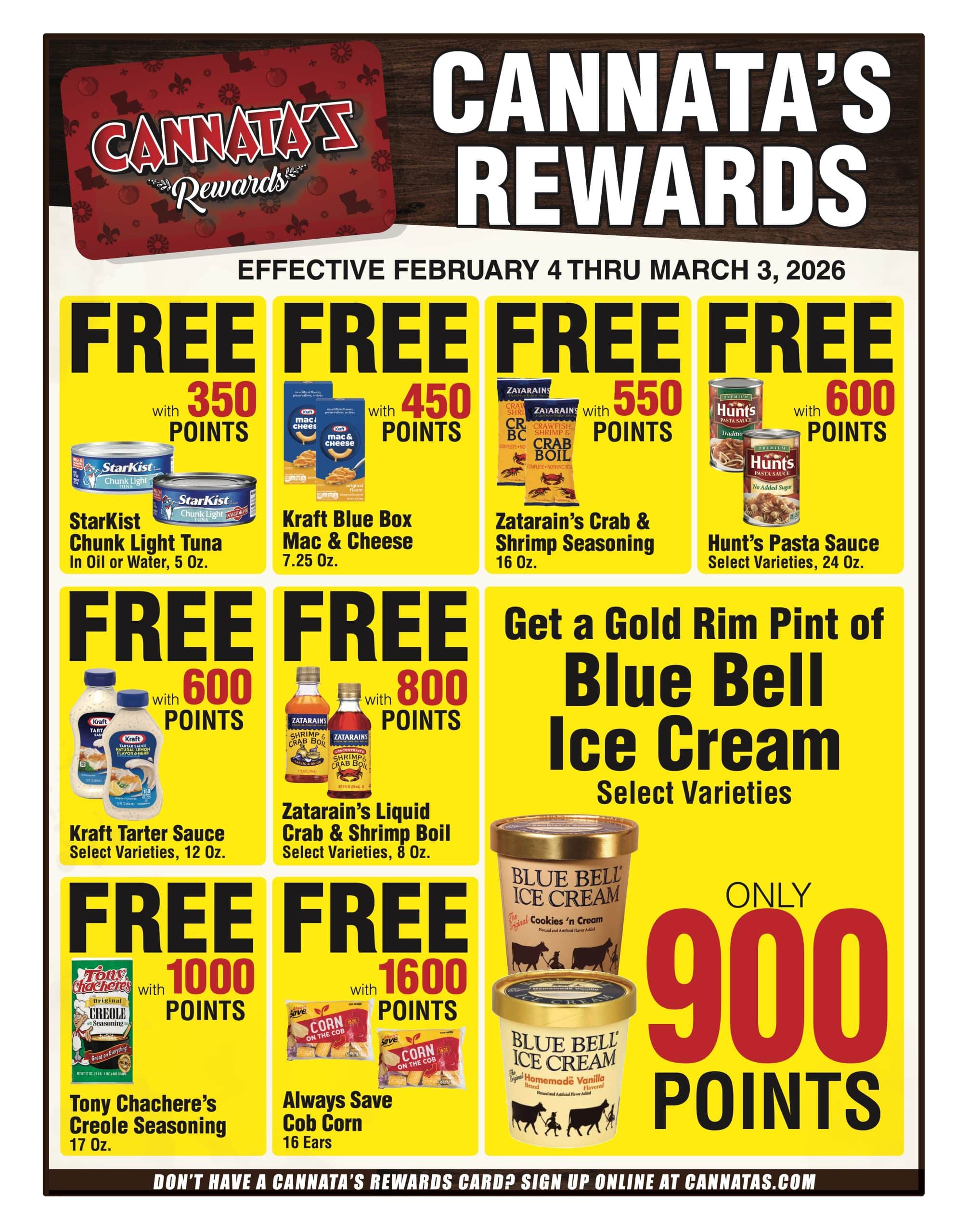 Earn points on purchases at Cannata's and through Cannata's Curbside. Points cannot be earned on alcohol, tobacco, lottery, or gift card sales.