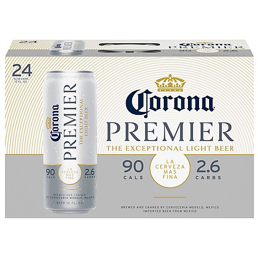 Corona Premier Mexican Imported Beer is the refreshing light beer experience you desire with fewer calories* and an exceptionally smooth taste. This lower-calorie*, lower-carb*, light lager beer contains just 90 calories* per 12 fl. oz. serving. Best served chilled in a glass or the can, beer by Corona Premier is perfectly balanced with the clean, pleasantly dry finish of traditional Mexican lager style beers. Enjoy this Corona beer with lime and pair it with Mexican food. Share this canned beer 24 pack at your next cookout or at the beach. Crisp and refreshing with a clean lager taste, this Mexican cerveza comes in a convenient 24 pack of beer cans that’s great for sharing after a day of golfing. *Per 12 fl. oz. serving average analysis: Calories: 90, Carbohydrates: 2.6 grams, Protein: 0.7 grams, Fat: 0.0 grams as compared to Corona Extra per 12 fl. oz. serving average analysis: Calories: 149, Carbs: 14.0 grams, Protein: 1.2 grams, Fat: 0.0 grams.