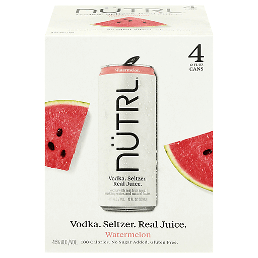 Vodka. Seltzer. Real juice. The fact that you're reading this means you've got great taste. That's why you're holding us and not, well, one of those other basic seltzers. We've got great taste too, because we're made with real vodka and real juice. Sounds like we've got a lot in common. Let's drink to that.Nutrl Watermelon Vodka Seltzer 4 - 12 fl oz Cans. Please remember to recycle and enjoy responsibly.