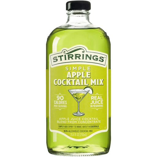 Enhance your drinking experience with Stirrings Apple Cocktail Mix. Stirrings apple cocktail mixer is the first apple martini mix to use real fruit and pure cane sugar for just the right crisp apple flavor. This cocktail mix made with no artificial preservatives, making it perfect for creating tasty alcoholic beverages you can enjoy and feel good about. Add your favorite spirits, from vodka to bourbon to one bottle of alcohol mixer to stir up eight delicious cocktails. Craft apple martinis, bourbon apple cocktails or mix in soda or seltzer water for a virgin cocktail. Store Stirrings apple cocktail mixer in the refrigerator until you’re ready to enjoy remarkable cocktails. With Stirrings non alcoholic cocktail mixers, you can create a variety of tasty cocktails and mixed drinks like 5 Calorie Margaritas, Mojitos, Cosmopolitans and more!