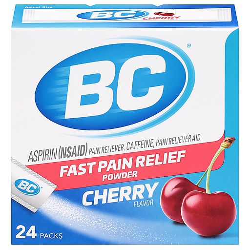 Turn pain into a distant memory with BC's original pain relief formula. Try our stick powder packs; a fast formula in a more convenient sealed stick pack! BC's powerful combination of ingredients relieves your pain at the speed of powder. Tension headache or back and body aches, BC has specialized pain relief that’s right for you. BC great tasting cherry powder pain reliever temporarily relieves headaches, backaches, toothaches, muscle aches and menstrual cramps. The unique, dual-action powder formula helps stop minor aches and pains fast. Pour the easy to swallow BC Powder on your tongue and follow with a non-alcoholic beverage or mix it with a non-alcoholic beverage and drink. Any way you take it, BC stops pain fast. Whether you choose Original, Cherry, MAX, or Arthritis, trust BC to take care of your pain fast.