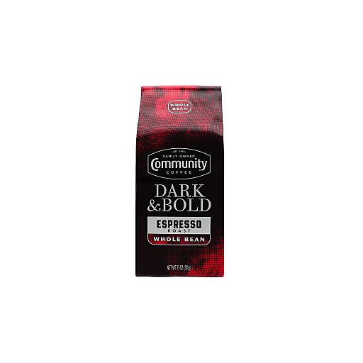 Community Coffee Coffee, Whole Bean, Espresso Roast, Dark & Bold 11 oz